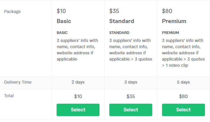 Pretty cheap, but the suppliers they find are often not the best value for money. If you think the suppliers you contact are not suitable and want to find others, you will have to pay again for an extra list of suppliers.